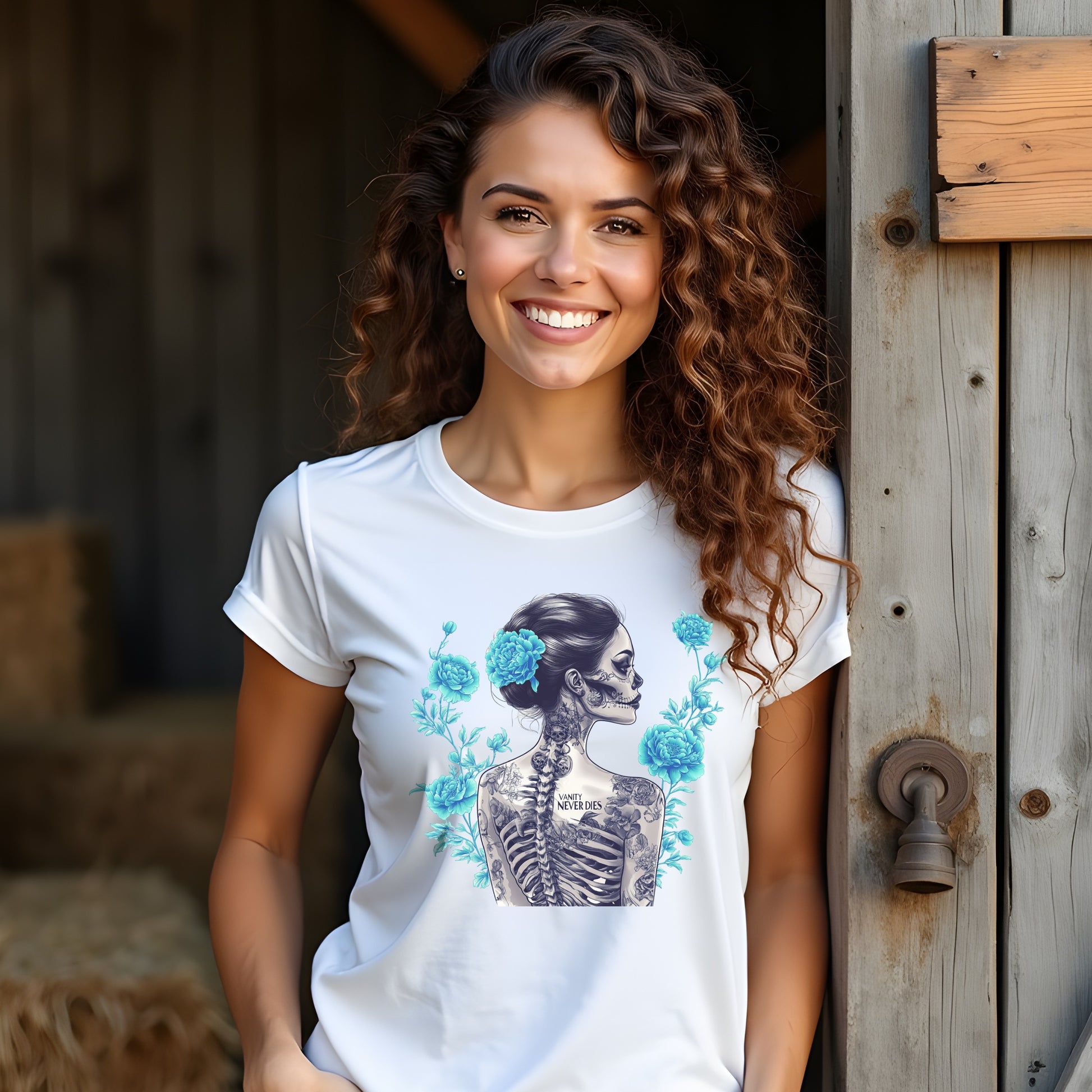 Celebrate spooky season with this Day of the Dead Skull Lady PNG Bundle! Featuring a gorgeous skeleton woman adorned with tattoo-style florals and the phrase "Vanity Never Dies," this set includes 9 unique, high-resolution (5000x5000 px) transparent PNGs in vibrant color palettes. Perfect for Halloween sublimation, gothic decor, Día de los Muertos crafts, stickers, and more. Ideal for crafters and gothic fashion fans looking to add a playful yet edgy touch to their projects. Digital download only—create your own eerie masterpieces today!