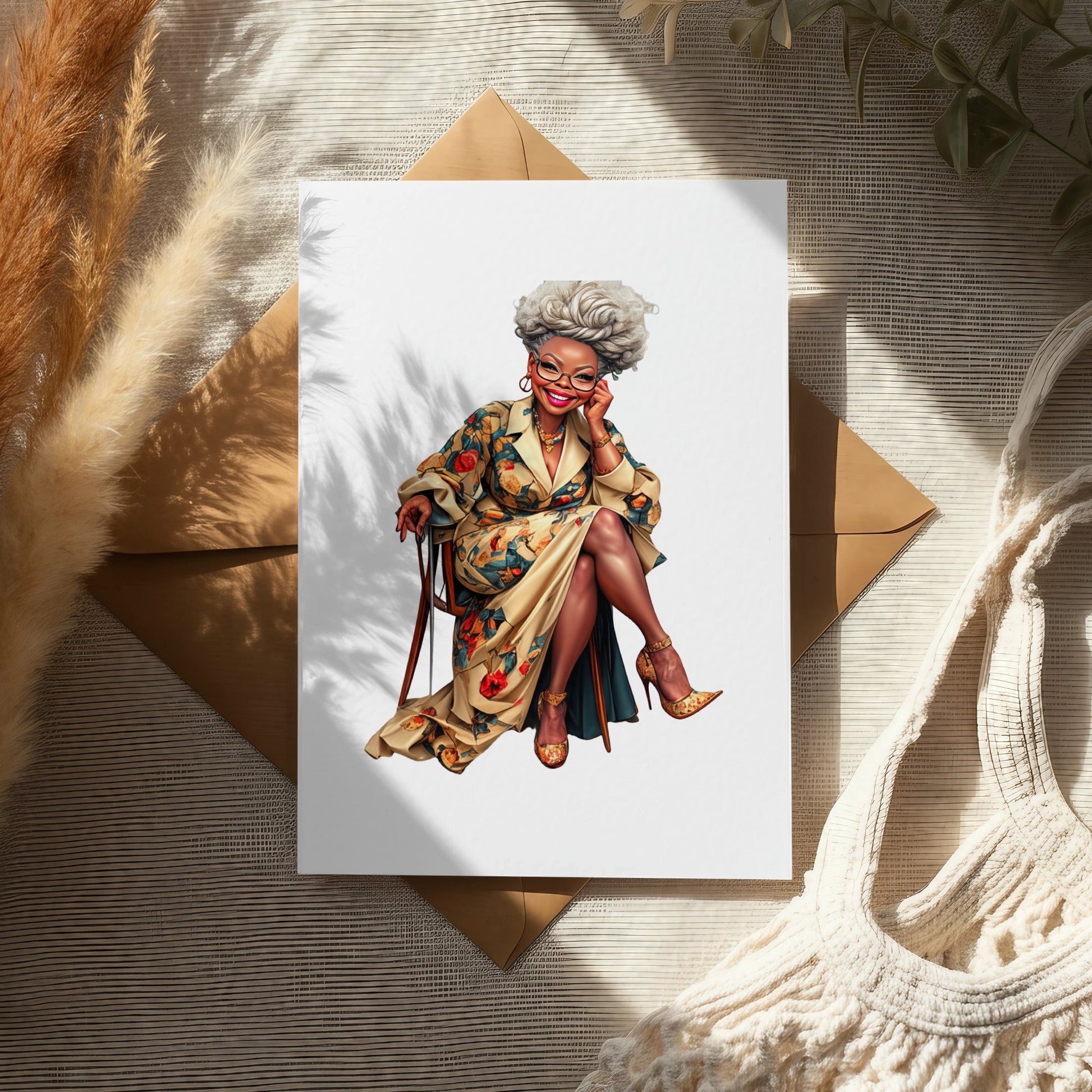Say hello to the auntie of elegance and the grandma of glam — Love in Locs Nana is not here to bake cookies (unless it’s to fund her candle biz and pop-up boutique). This digital bundle brings you 20 stunning PNGs of unapologetically stylish Nanas rocking bold prints, luxe locs, fly heels, and enough charisma to steal the show and your man’s attention.